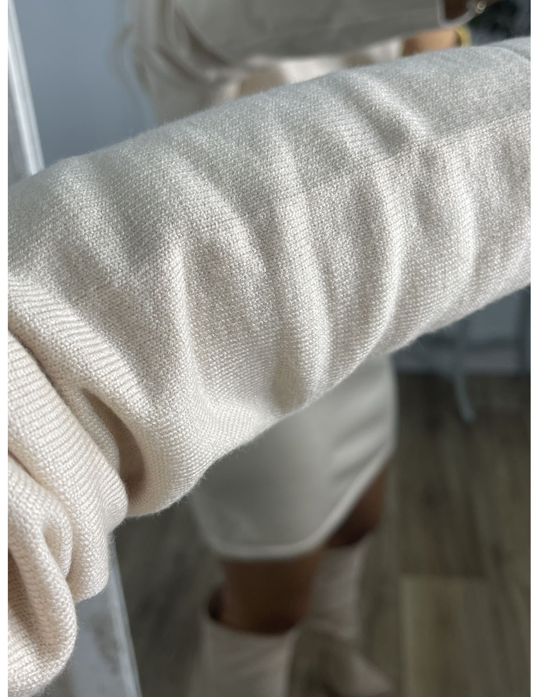 Vestido de punto cuello alto de corte recto que trae cinturón del mismo tejido.
