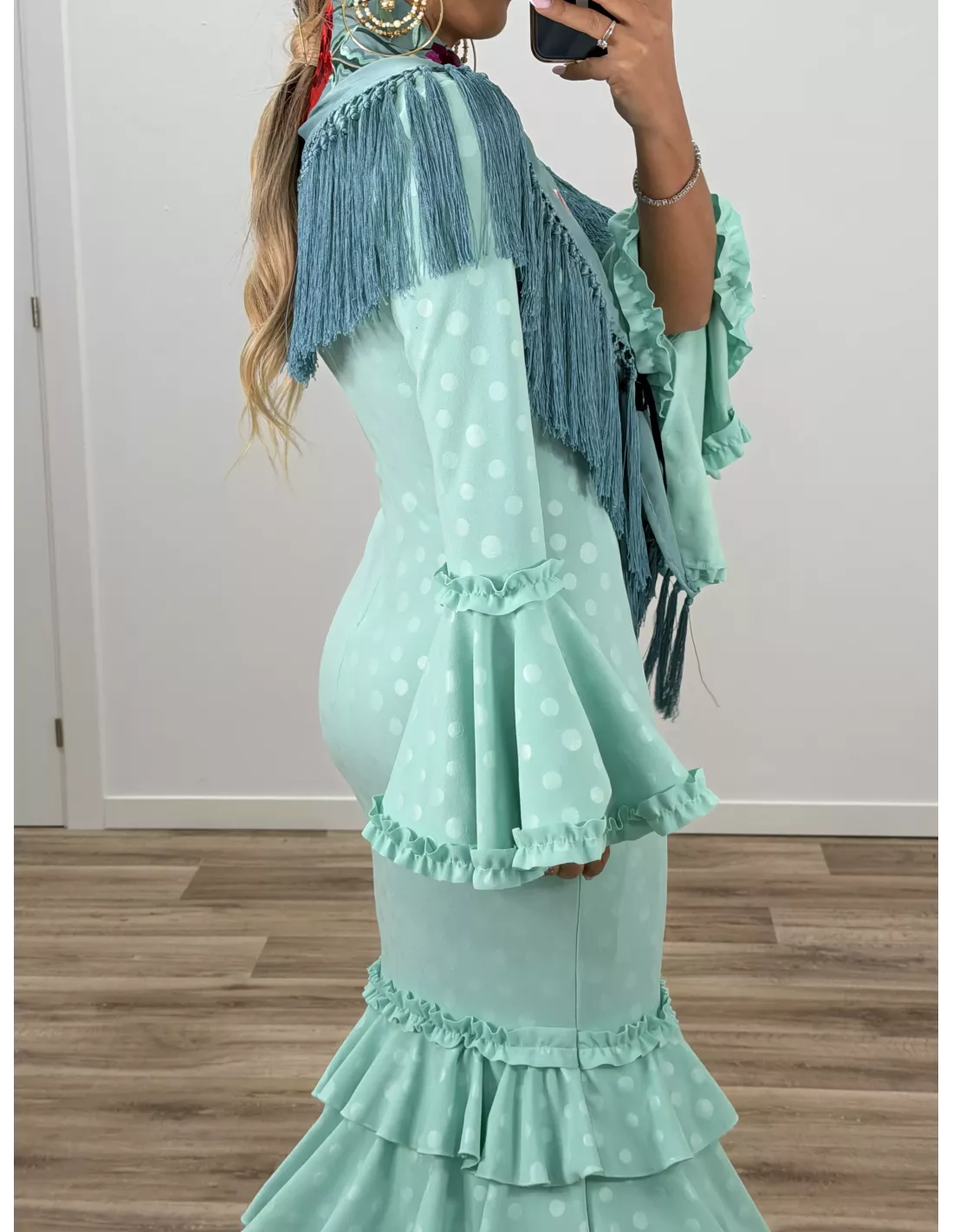 -Talla 3: hombro 43 cm, pecho 46 cm, cadera 48 cm, manga 66 cm, largo 158cm