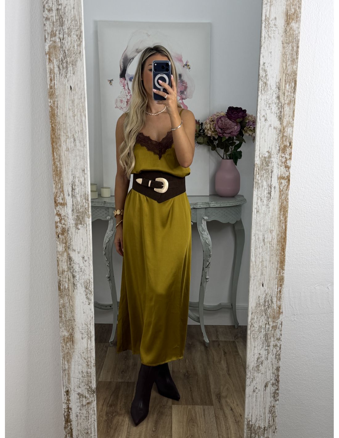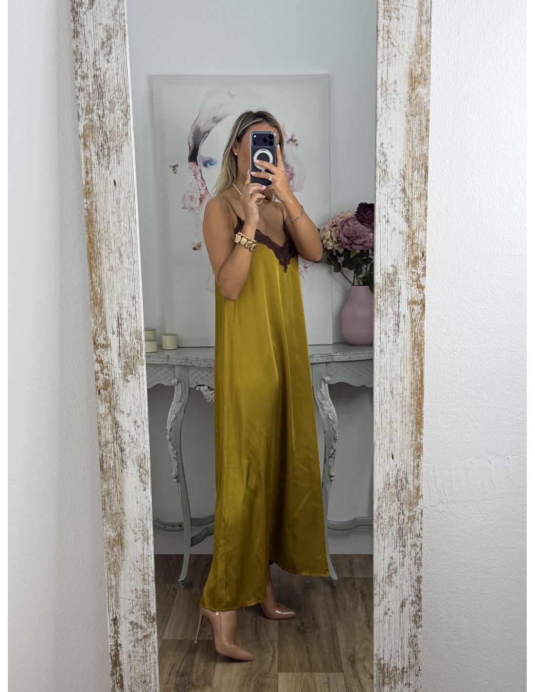 Vestido lencero largo mostaza