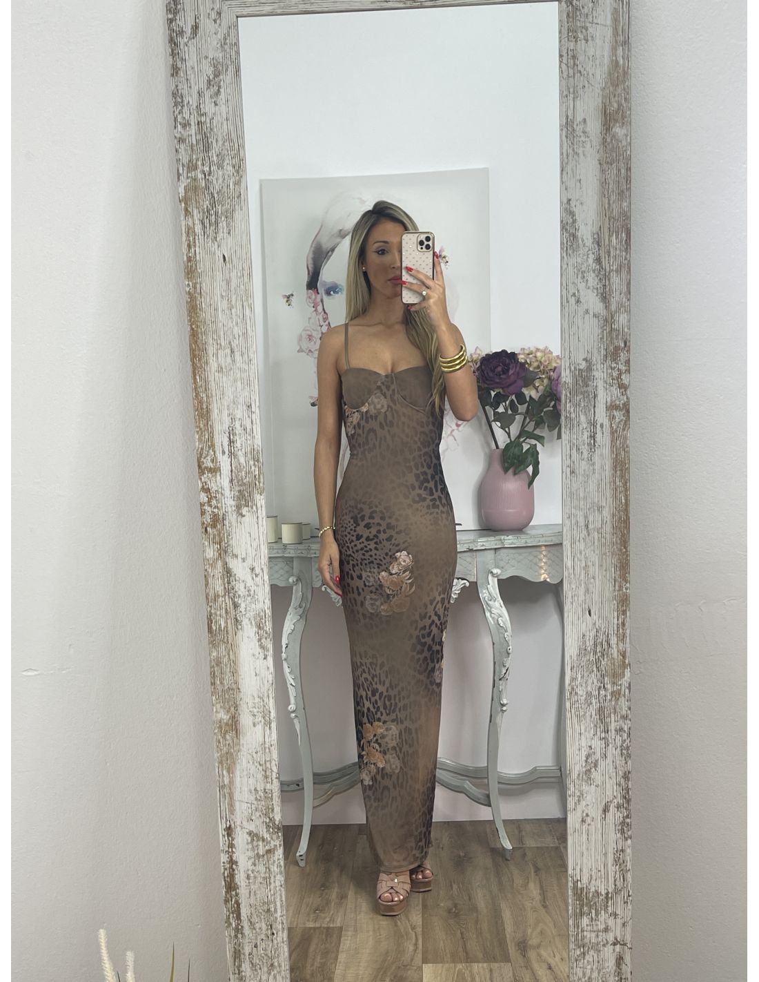Vestido marrón print y flores