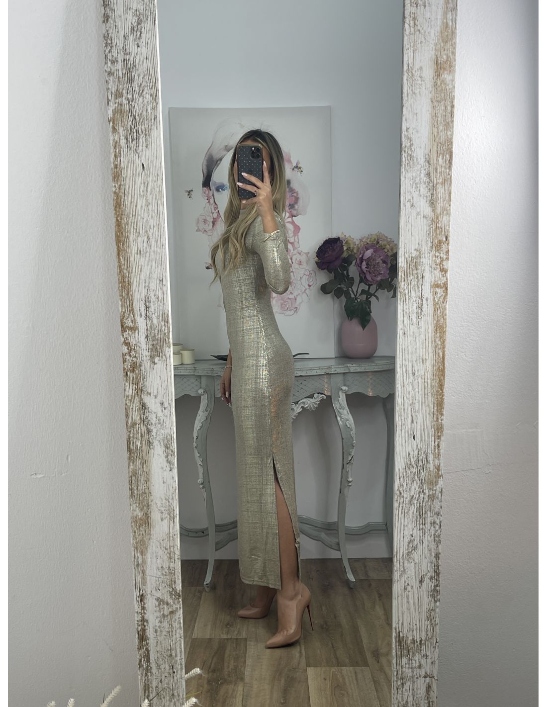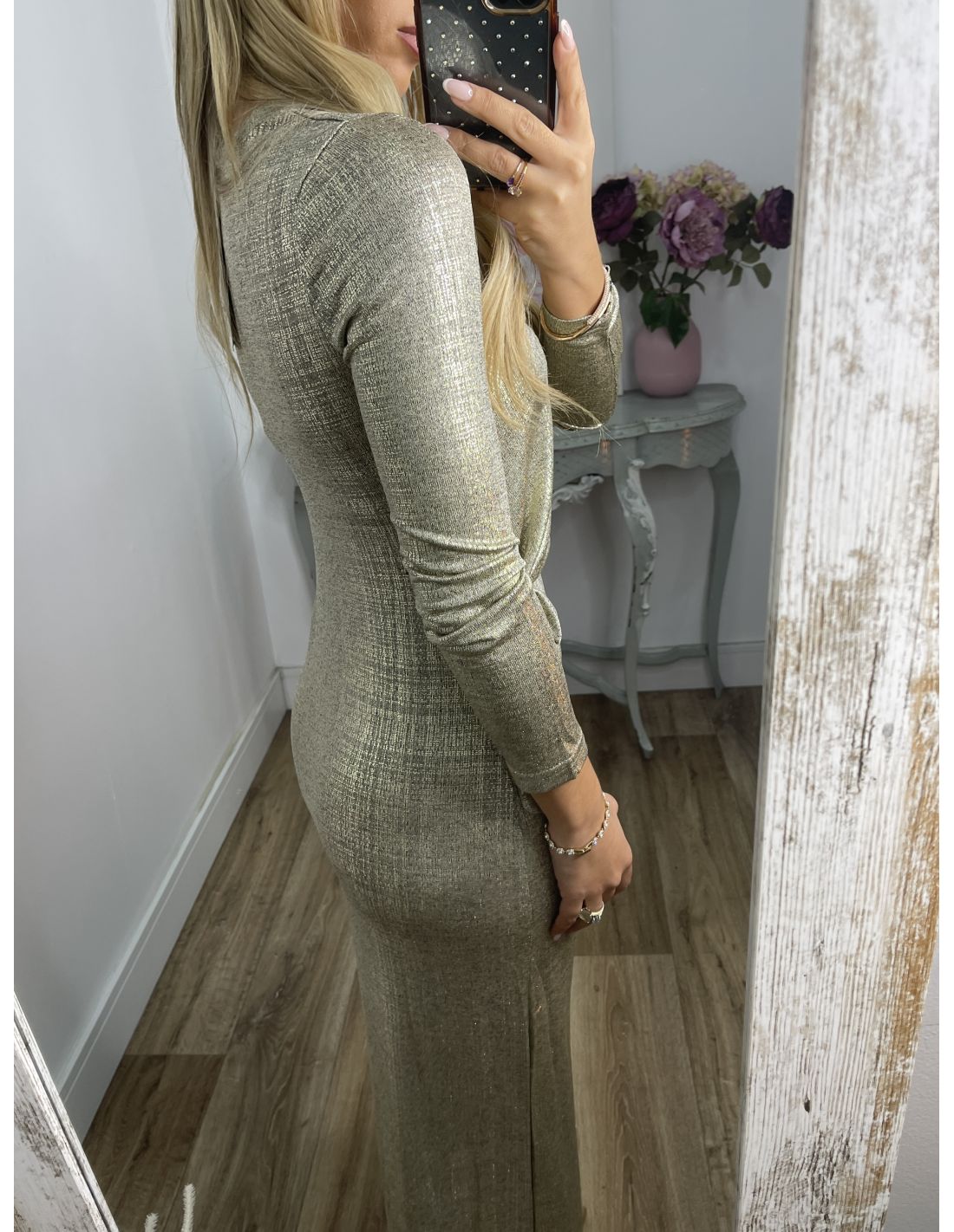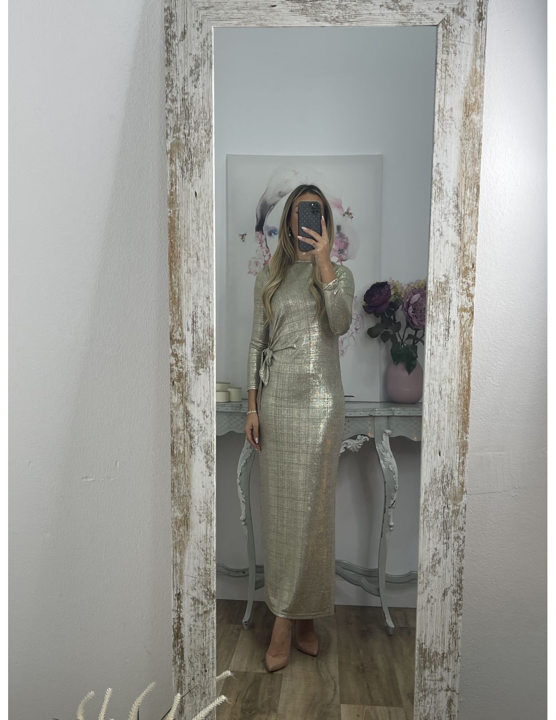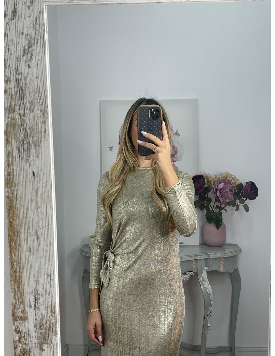 Vestido nudo brillo dorado
