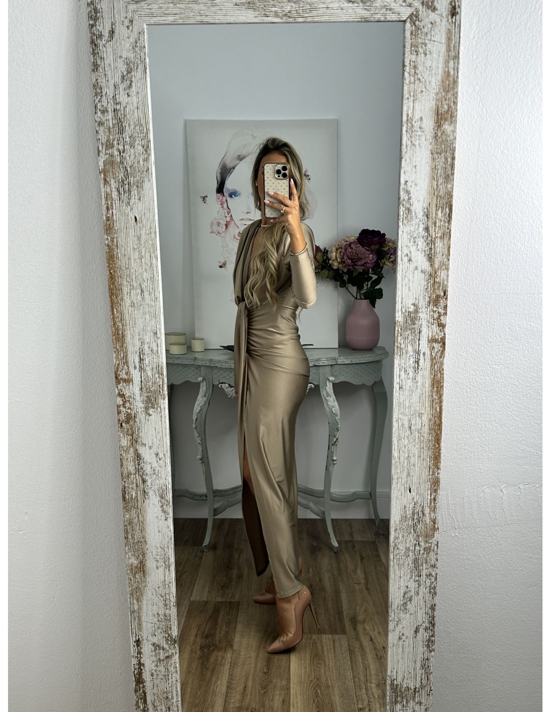 Vestido Oriana champán manga largas