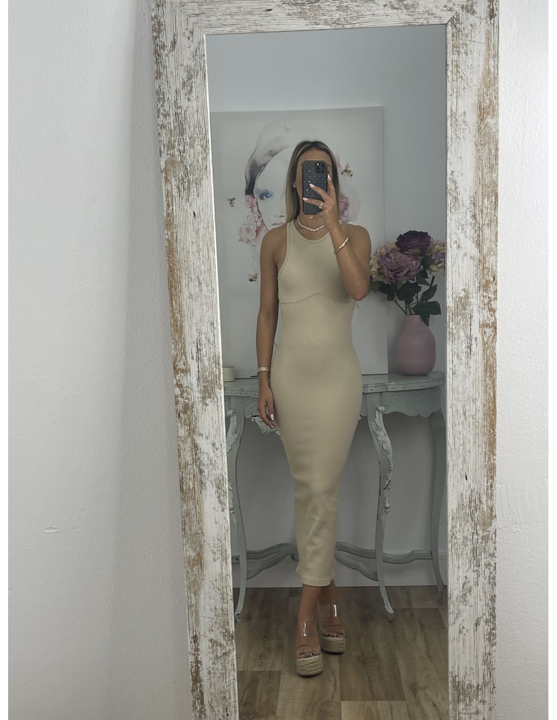 Vestido de punto con la espalda al aire. De corte ajustado.