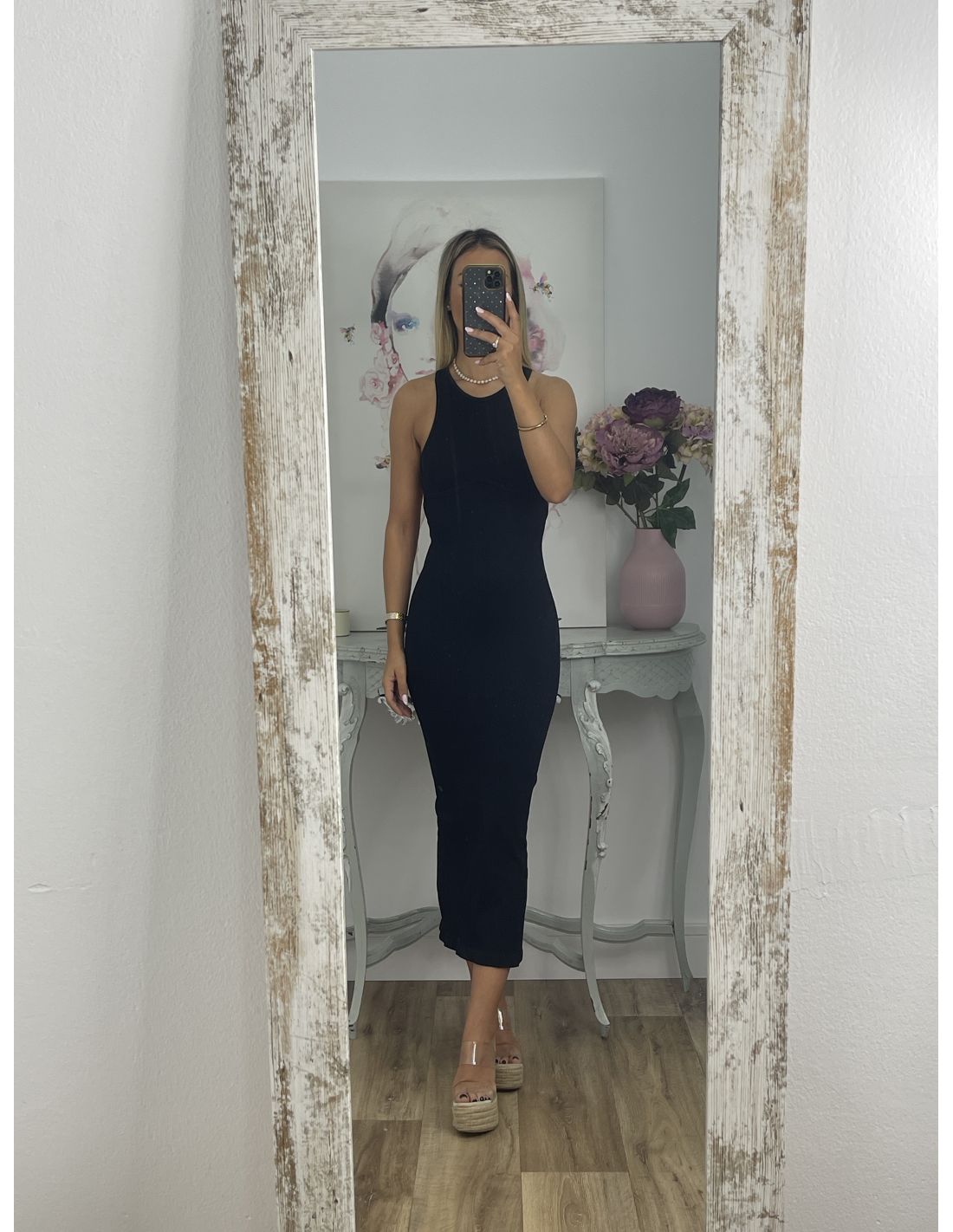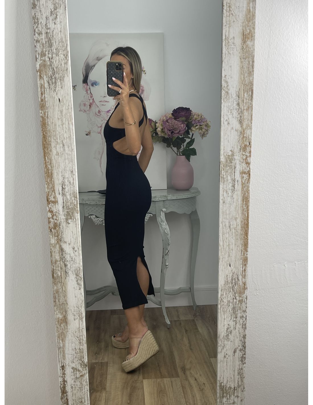 Vestido de punto con la espalda al aire. De corte ajustado.