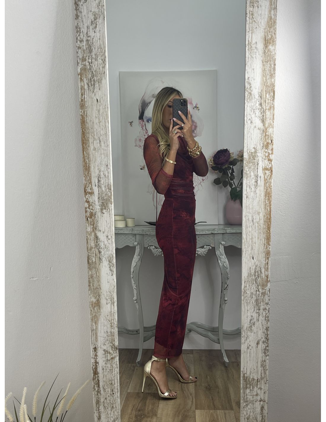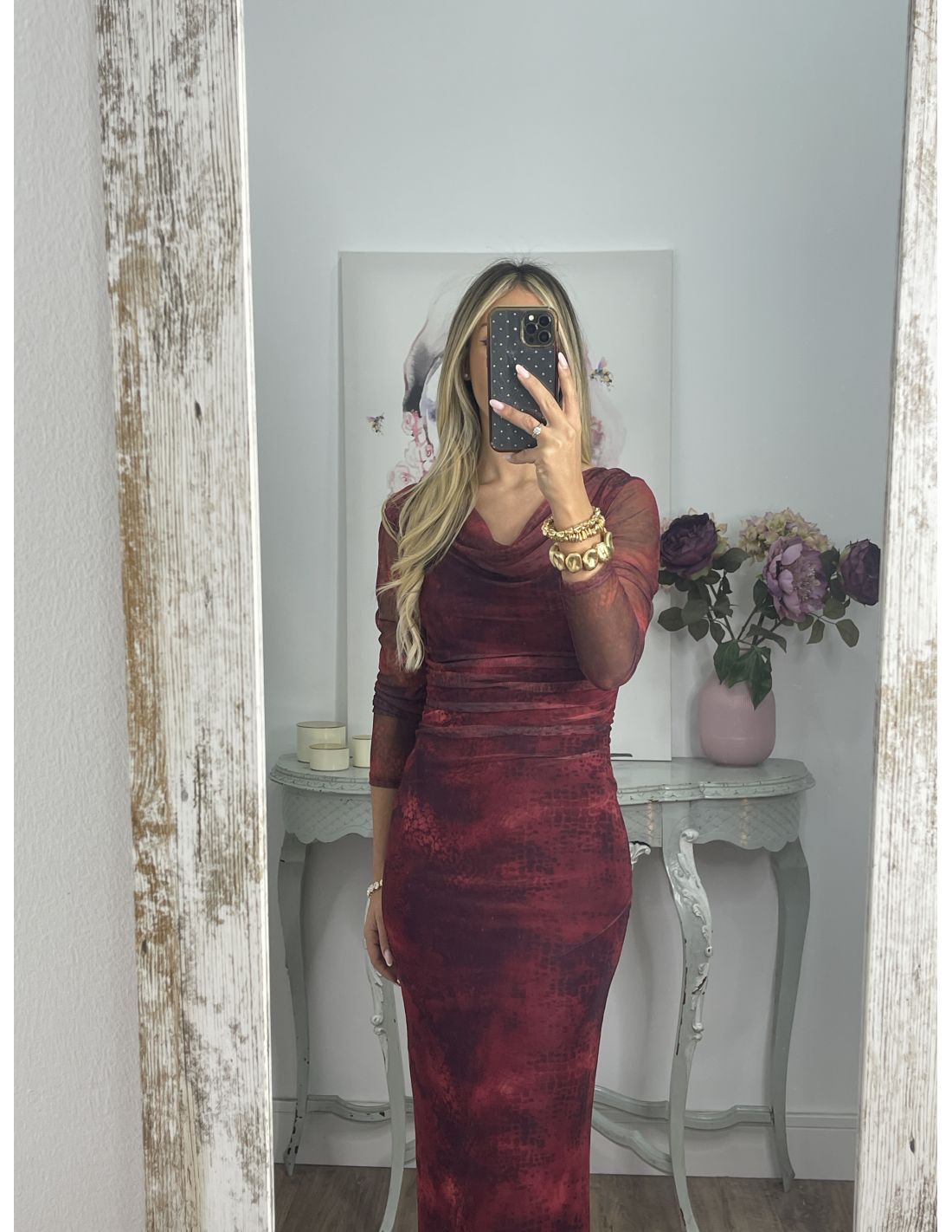 Vestido Roselin tull burdeos