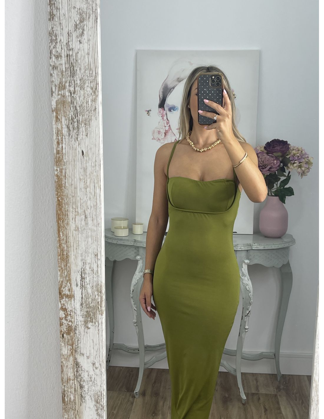 Medidas: pecho: 58 cm, cadera 49 cm, largo 125 cm