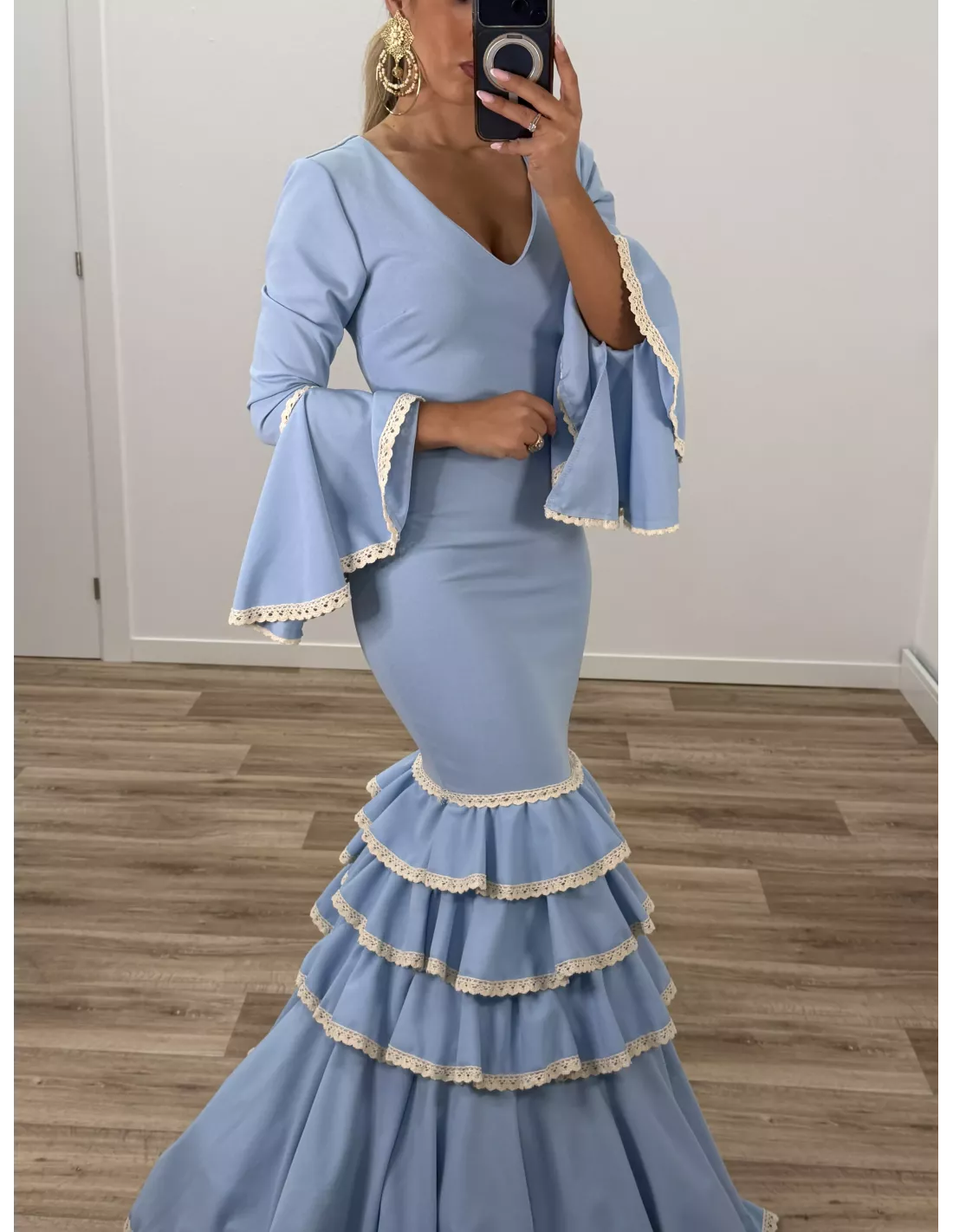 -Talla 3: hombro 43 cm, pecho 46 cm, cadera 48 cm, manga 66 cm, largo 158cm