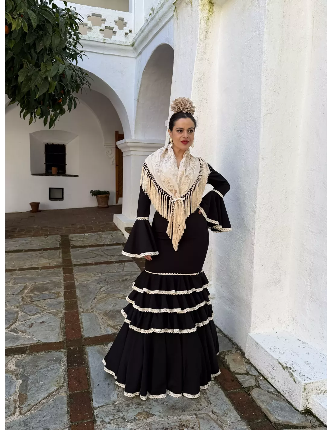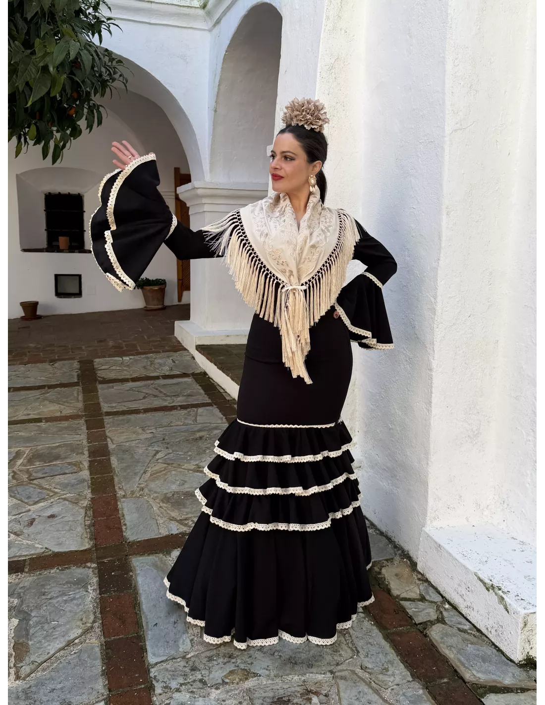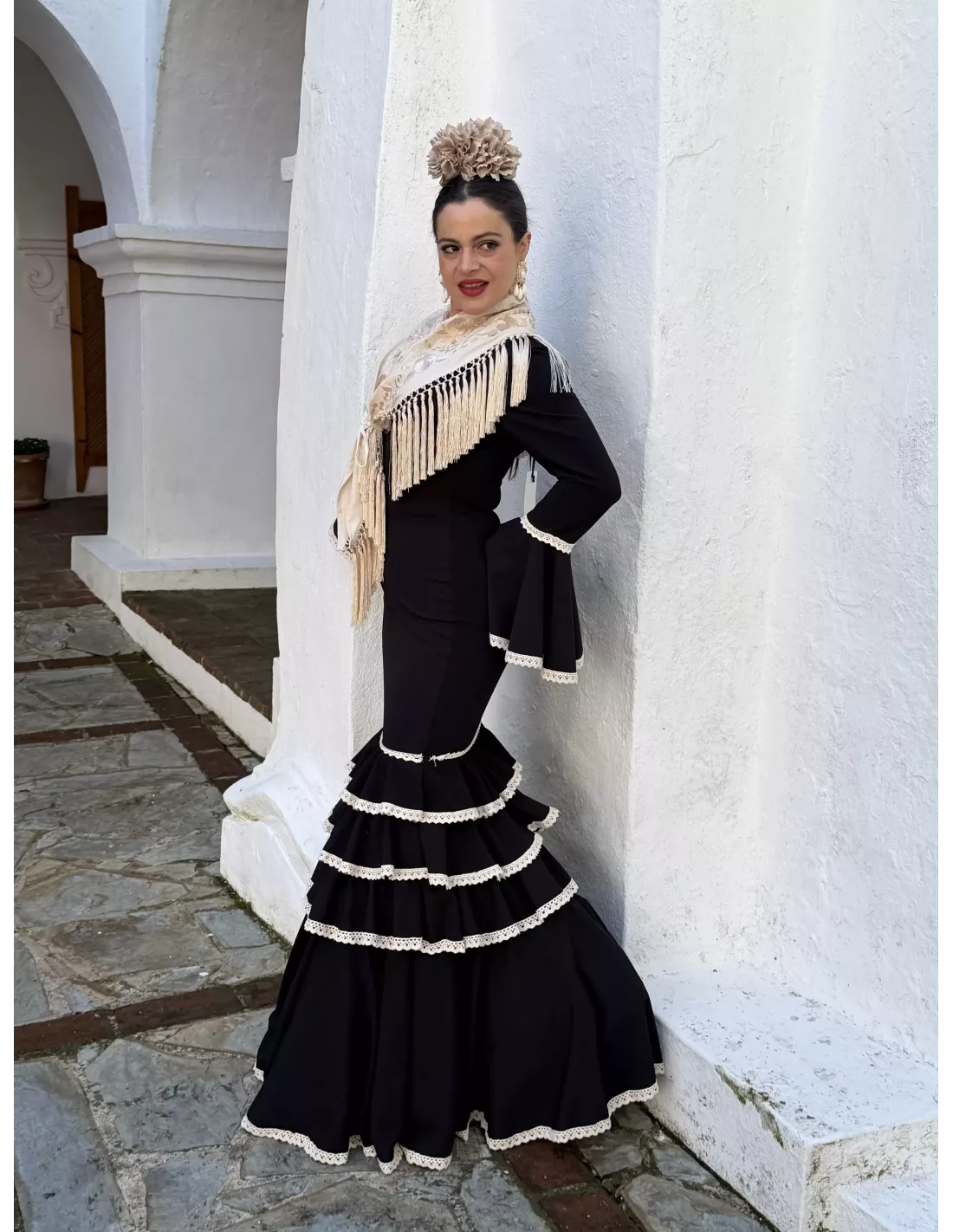 Vestido Flamenca con puntilla beige