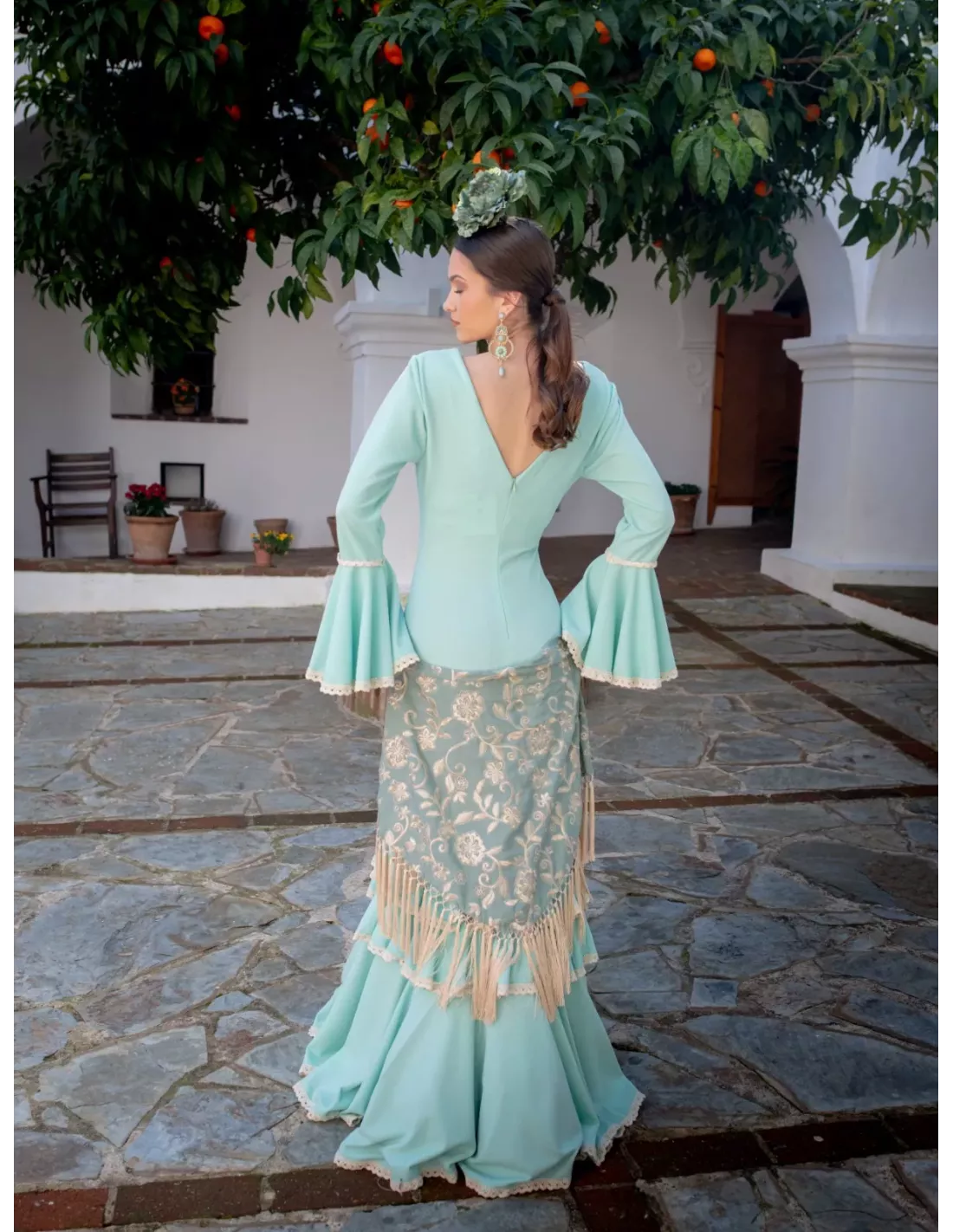 -Talla 1: Hombro 36 cm, pecho, 40 cm, cadera 39 cm, manga 62 cm, largo 160 cm
