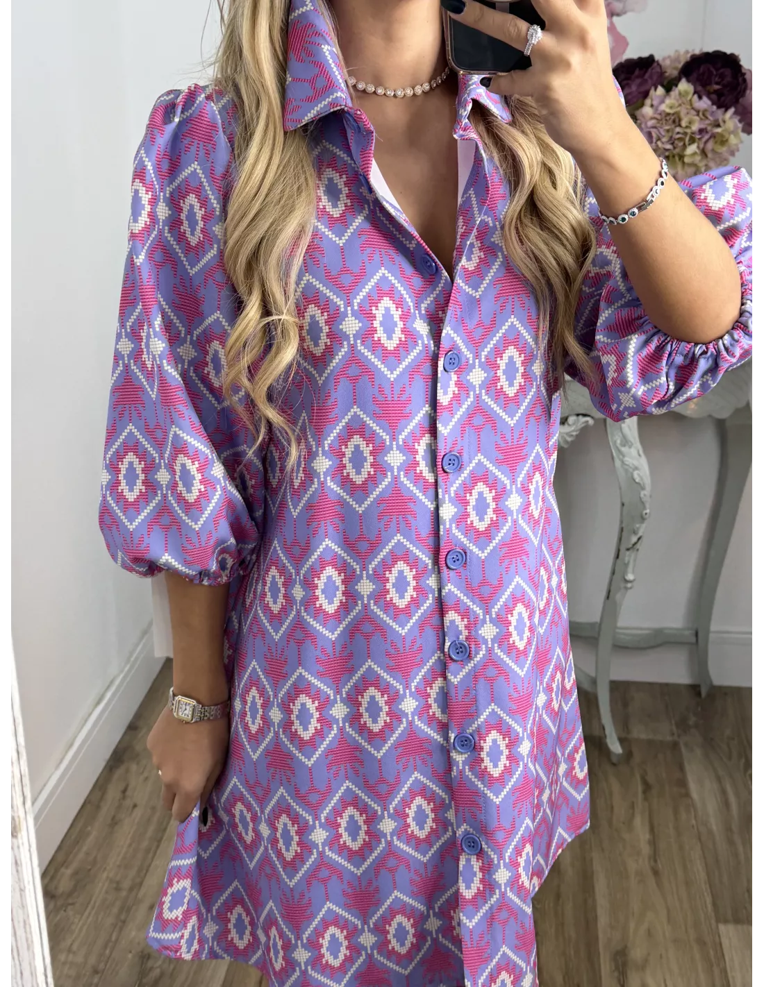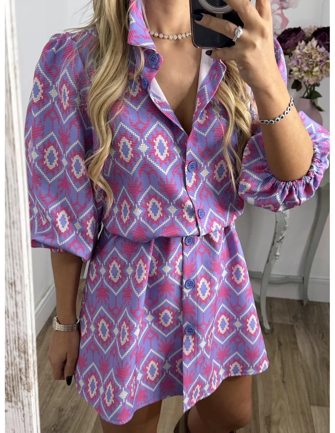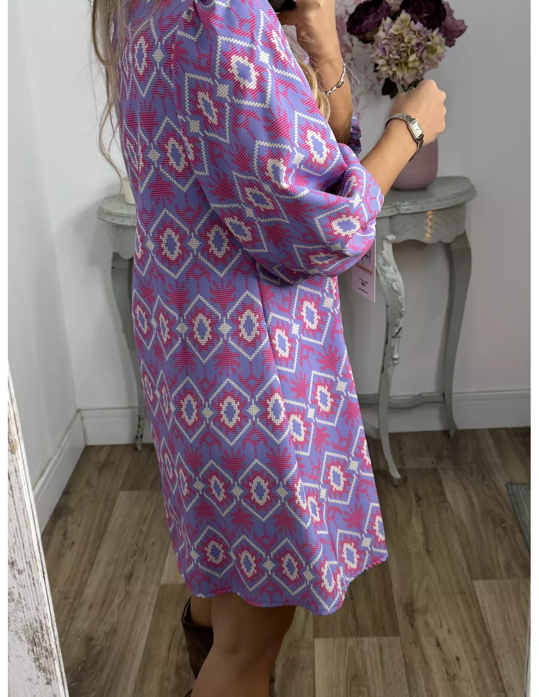 Vestido Victoria morado con rosa
