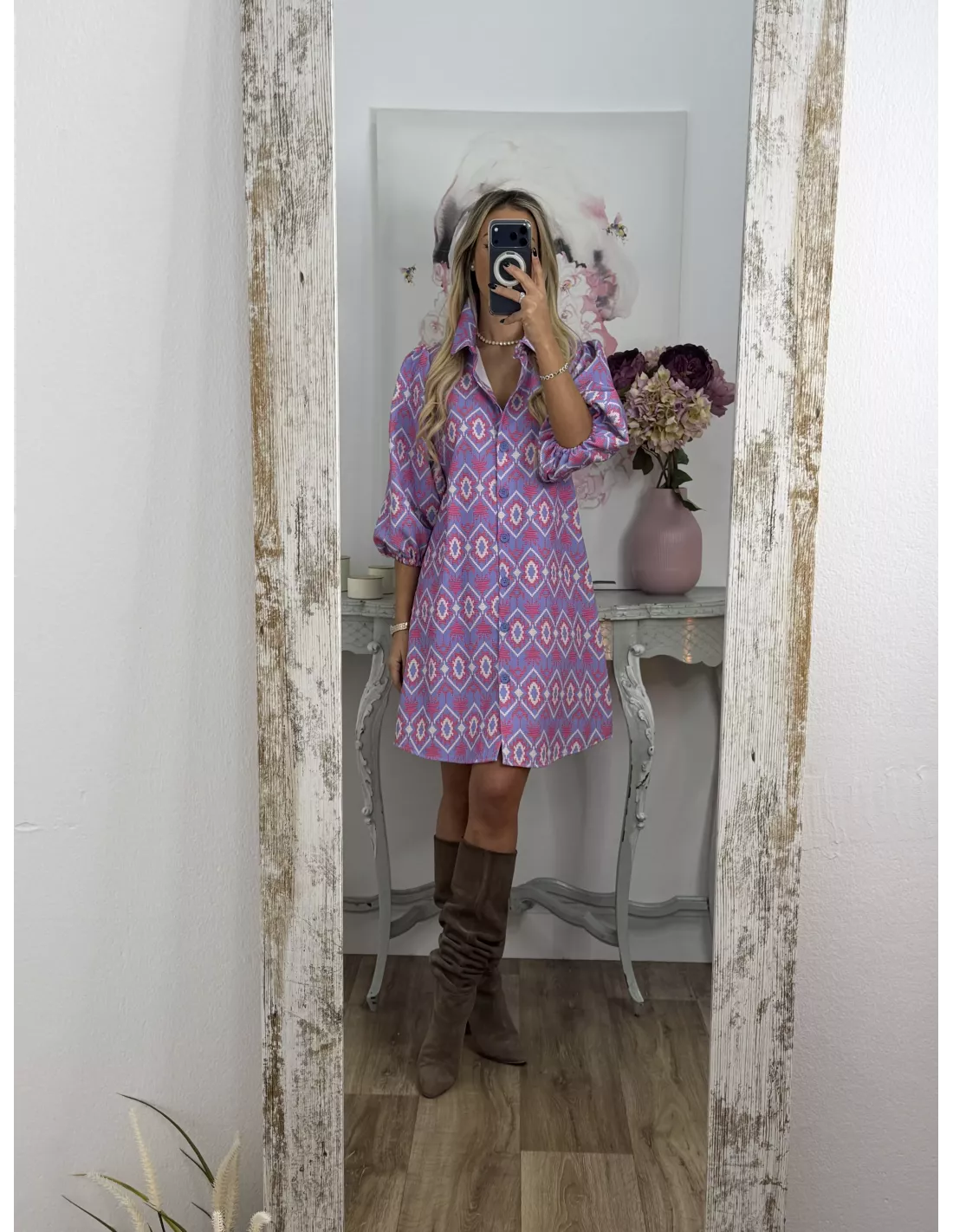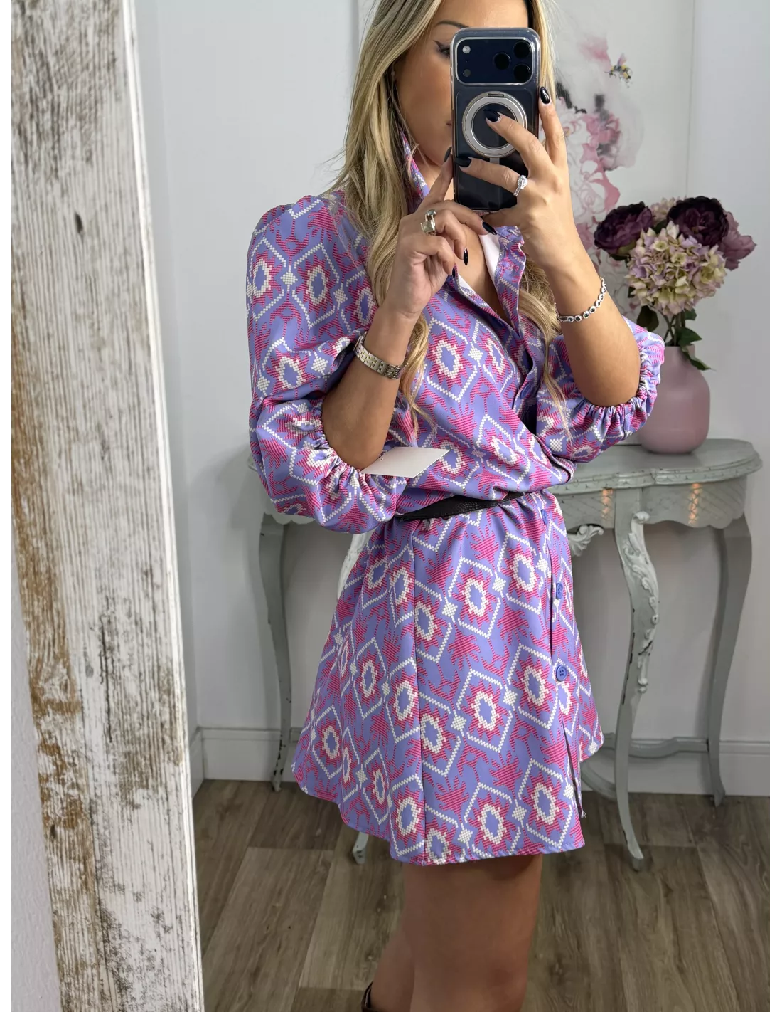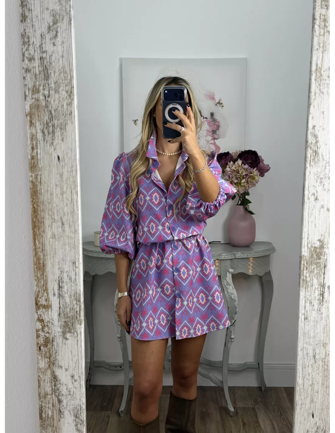 Vestido Victoria morado con rosa