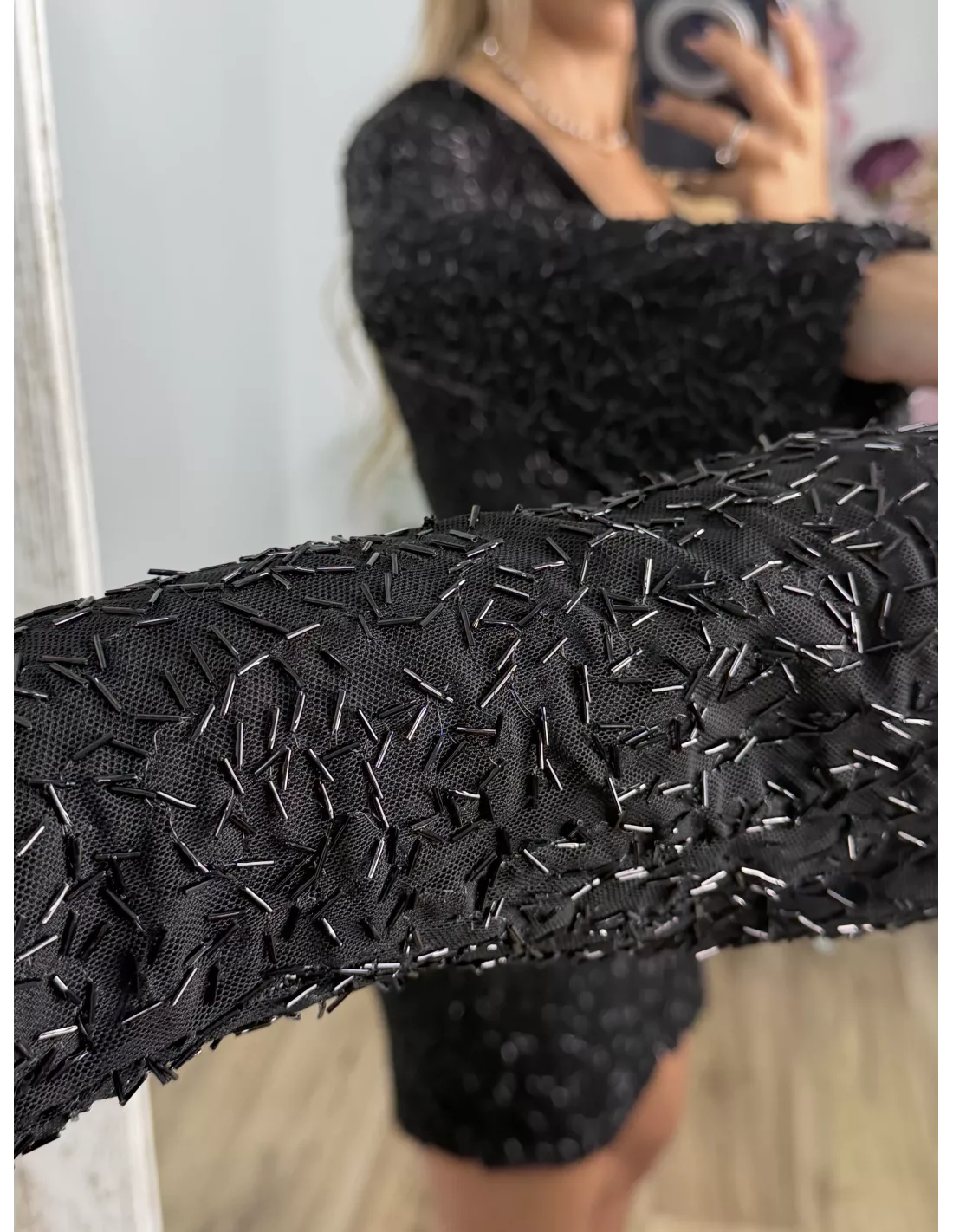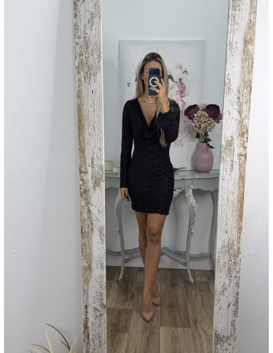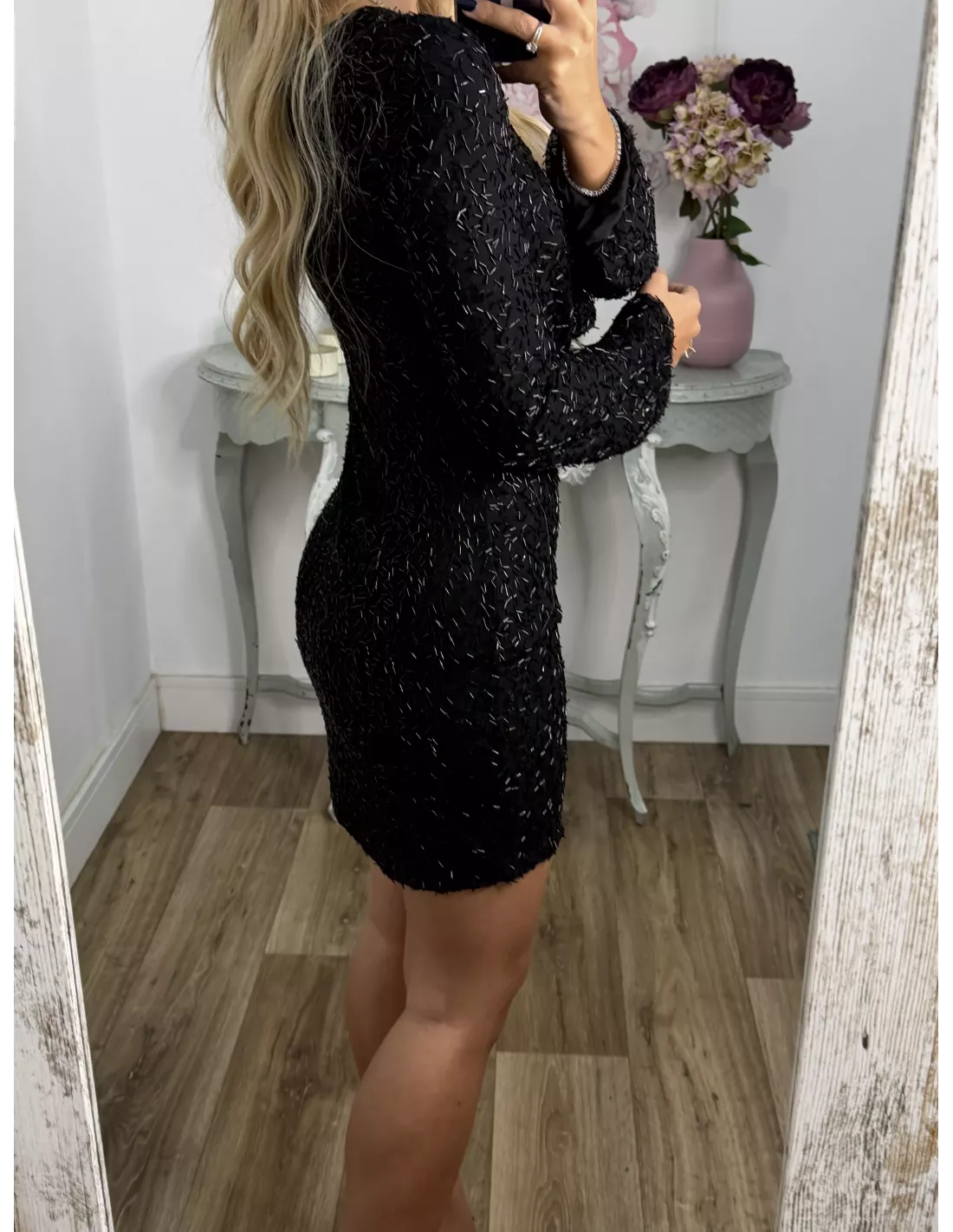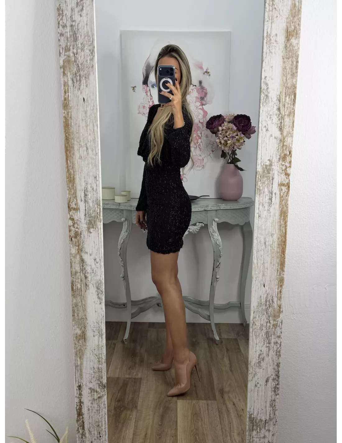 Vestido de lentejuelas. Va forrado, la lentejuela no está en contacto con la piel, no pica nada. Es de corte ajustado. El escote se puede poner hacia delante o hacia atrás.