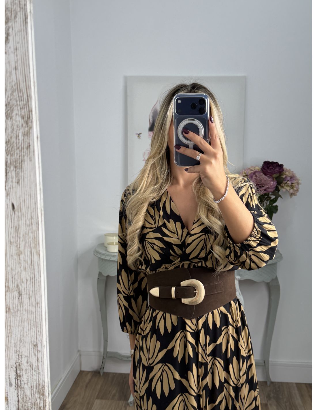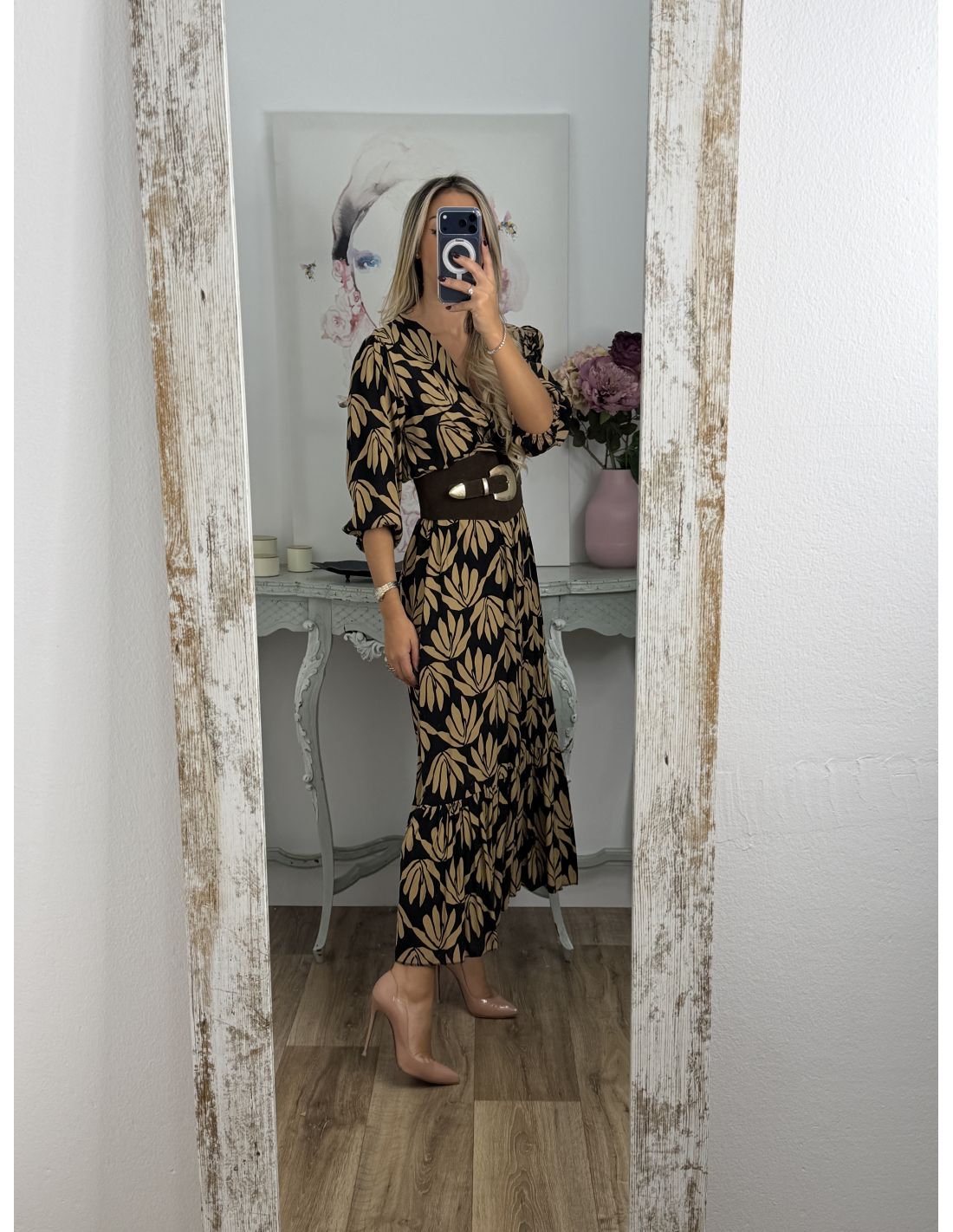 Vestido con corte debajo del pecho y escote cruzado. La zona de la falda es suelta, no va forrada, no marca ni se transparenta.