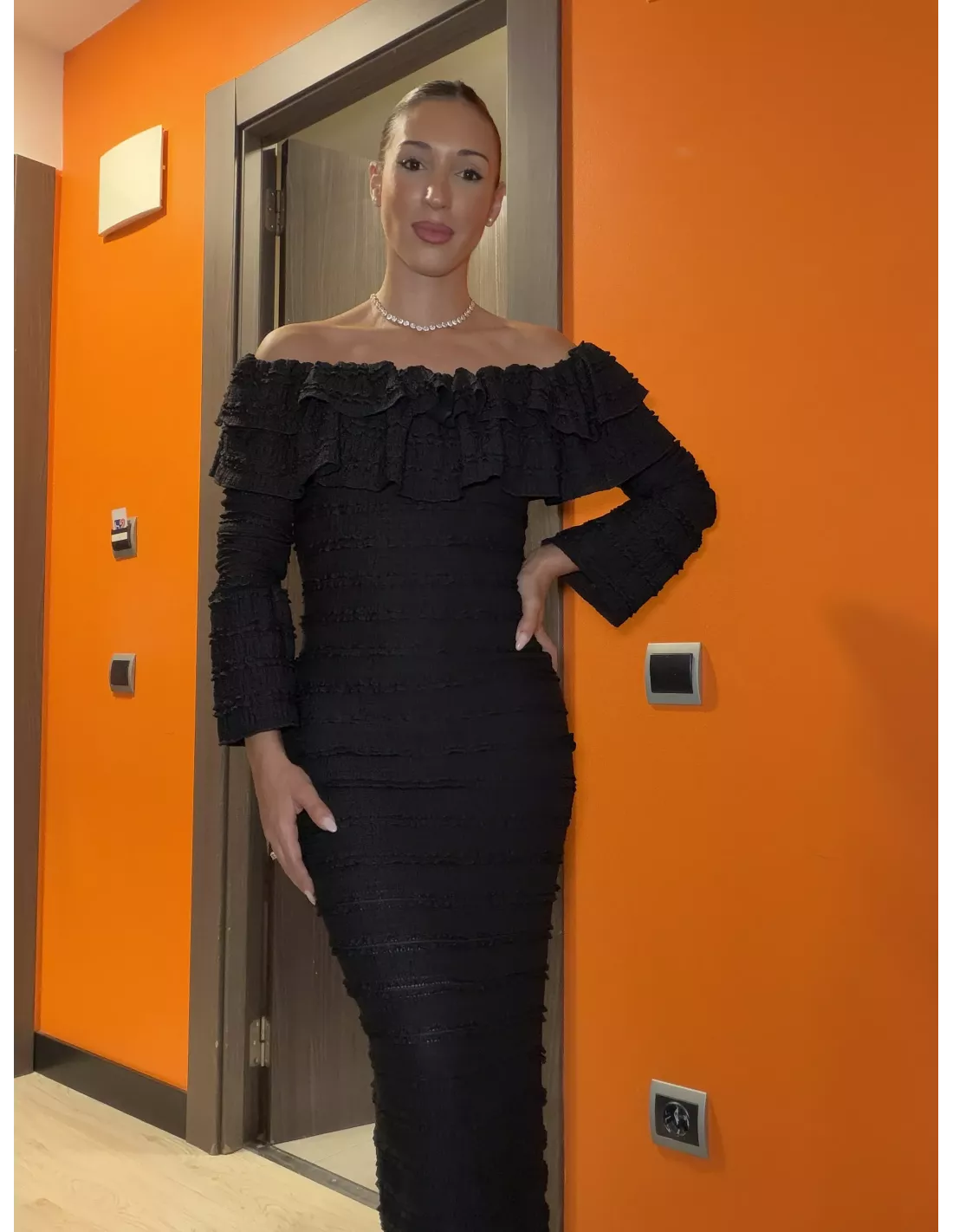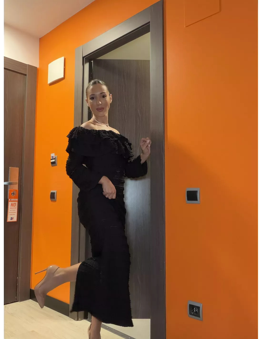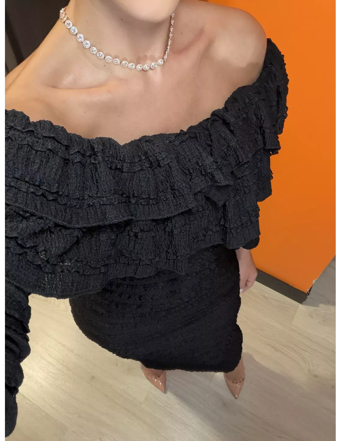 Vestido de punto de escote tipo barco, Te lo puedes poner también el escote hacia arriba. Es de corte ajustado y va forrado. No incluye el cinturón.